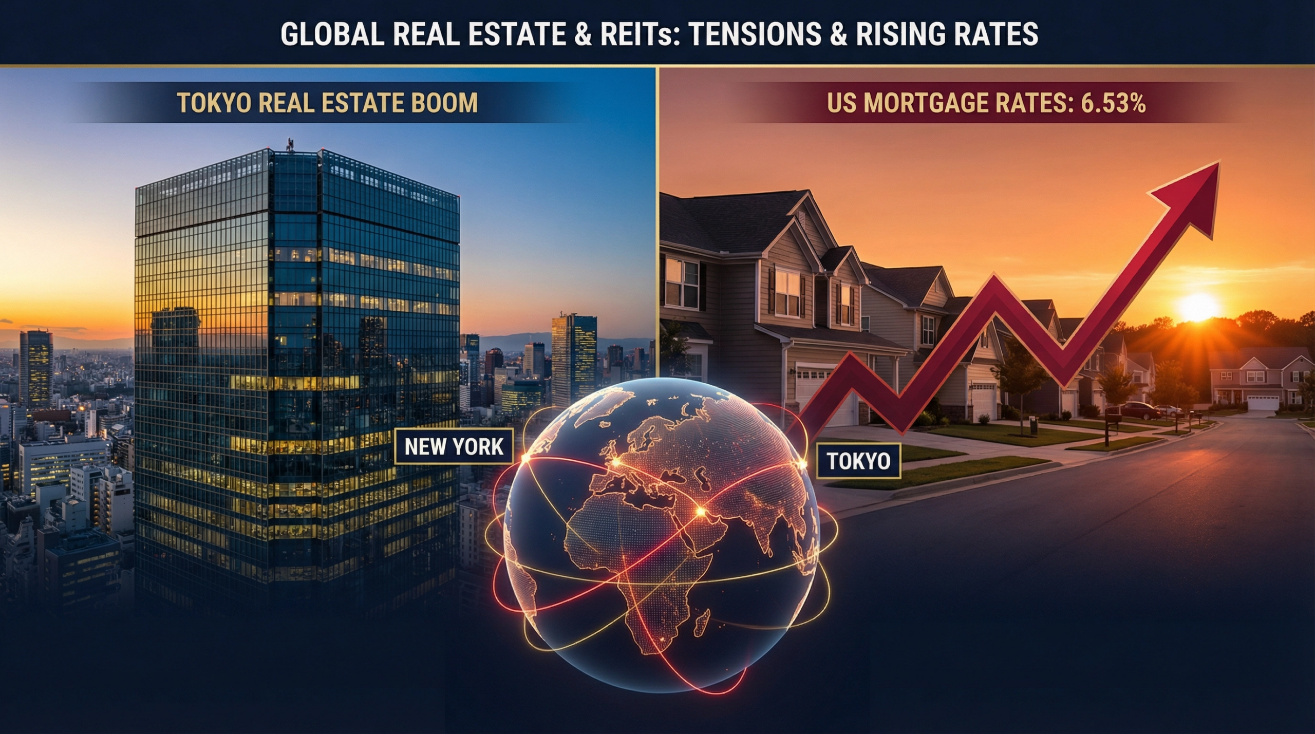 イラン戦争を契機とした地政学的リスクが米国の住宅ローン金利を6.53%へと急騰させ、市場の利下げ期待を打ち砕いている。この構造的変化は、REITs市場における大型株と小型株の極端な二極化を生み出す一方、日銀が金利を据え置く日本市場では、東京のオフィス賃料がバブル期ピークに接近するという対照的な現象を引き起こしている。投資家は今、単なる金利動向ではなく、地政学がもたらす「インフレの粘着性」を前提としたポートフォリオの再構築を迫られている。